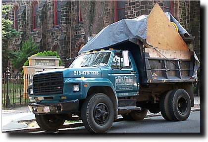 On September 5, Big Joe himself visited the block to explain the communications snafu. He had been away, and the employee who was supposed to move the truck neglected to do so. The firm (a very new business) is engaged to haul away construction debris from a property on our block that is being renovated as a luxury townhouse. The truck was removed that day, and we are all grateful for Big Joe's prompt action. Big Joe also explained another problem as he sees it, one that brings conflicting views of the public good into play. He told me that the dumping sites are in south (or maybe southwest) Philadelphia, but that they're working over capacity right now, and there are times that the dump site won't accept his truck. Rather than drive this large and fully-loaded truck back to a facility in the Northeast, he prefers to park it short term closer to the dump. From the standpoint of easing road congestion this makes good sense. On the other hand, parking in front of a church for any length of time is a hardship, especially in any congregation with a large proportion of elderly and infirm parishioners. And, in fact, parking a large vehicle in a residential neighborhood where parking spaces are at a premium is an imposition on the residents. I hope we can find a solution for this problem that is good for both the Big Joes and the Christian Streets of our city. [HOME] |