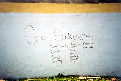 solidarity by climbing the fence and writing on the garden wall. As Sixers