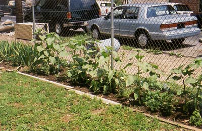Friends and well-wishers have given us some wonderful plantings to add to the garden. With the exception of the few shrubs noted above, they are all being cared for in our backyard until later summer when the weather is cooler. Several people have given us hostas, which will probably be planted at other locations until this garden has some shade to offer them. Although portions of the garden are shaded by the house on the west side, the summer sun beats down relentlessly until about 2:00 p.m., which is not an ideal environment for any hostas. Water is also a problem -- we can hook a hose to the fire hydrant on the other side of the intersection, but bringing a hose, getting the necessary hydrant hook-up equipment from its storage place, and getting things in place is a considerable chore.