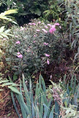 Finding these two plants, plus a second chrysanthemum toward the back of the lot and the iris in the triangular bed, led us to consider dividing the large clumps once the lot was cleared. |