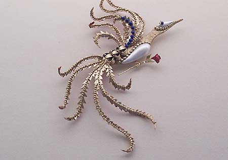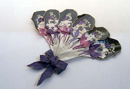 Shown here are three entries from two competitive classes that use plant materials as art: two fans and one piece of jewelry.