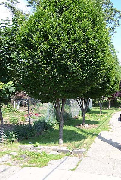 The view down Webster Street past the community garden and toward the woodland. The gardeners mow this small strip of lawn regularly and it is occasionally used to provide story hour to neighbor children on hot afternoons.
